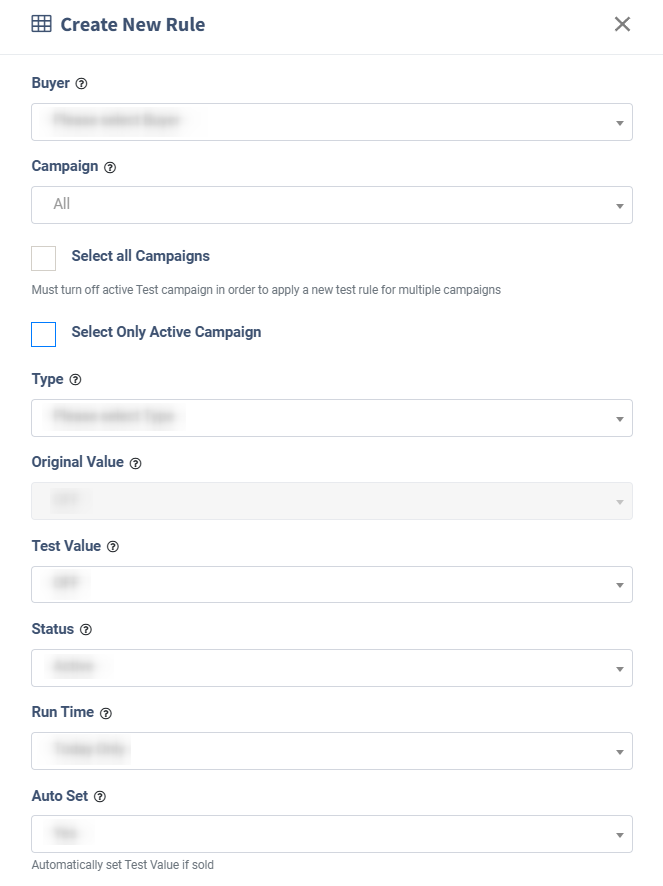 - Select all Campaigns: Check the box to apply the rule to all the Campaigns for the selected Buyer.