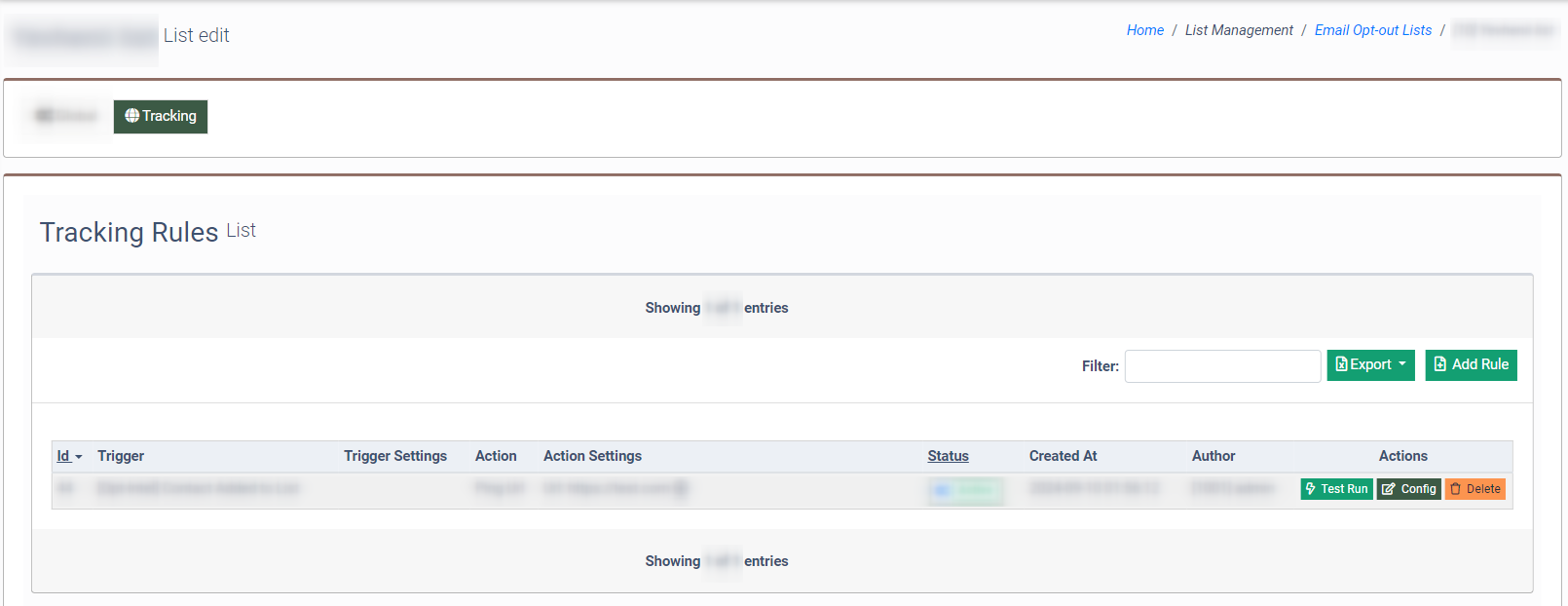 To set the Tracking Rule for the particular Email List, go to the List Management > Email Opt-out Lists section, select the corresponding Email Opt-Out List, and click the “Edit” button.