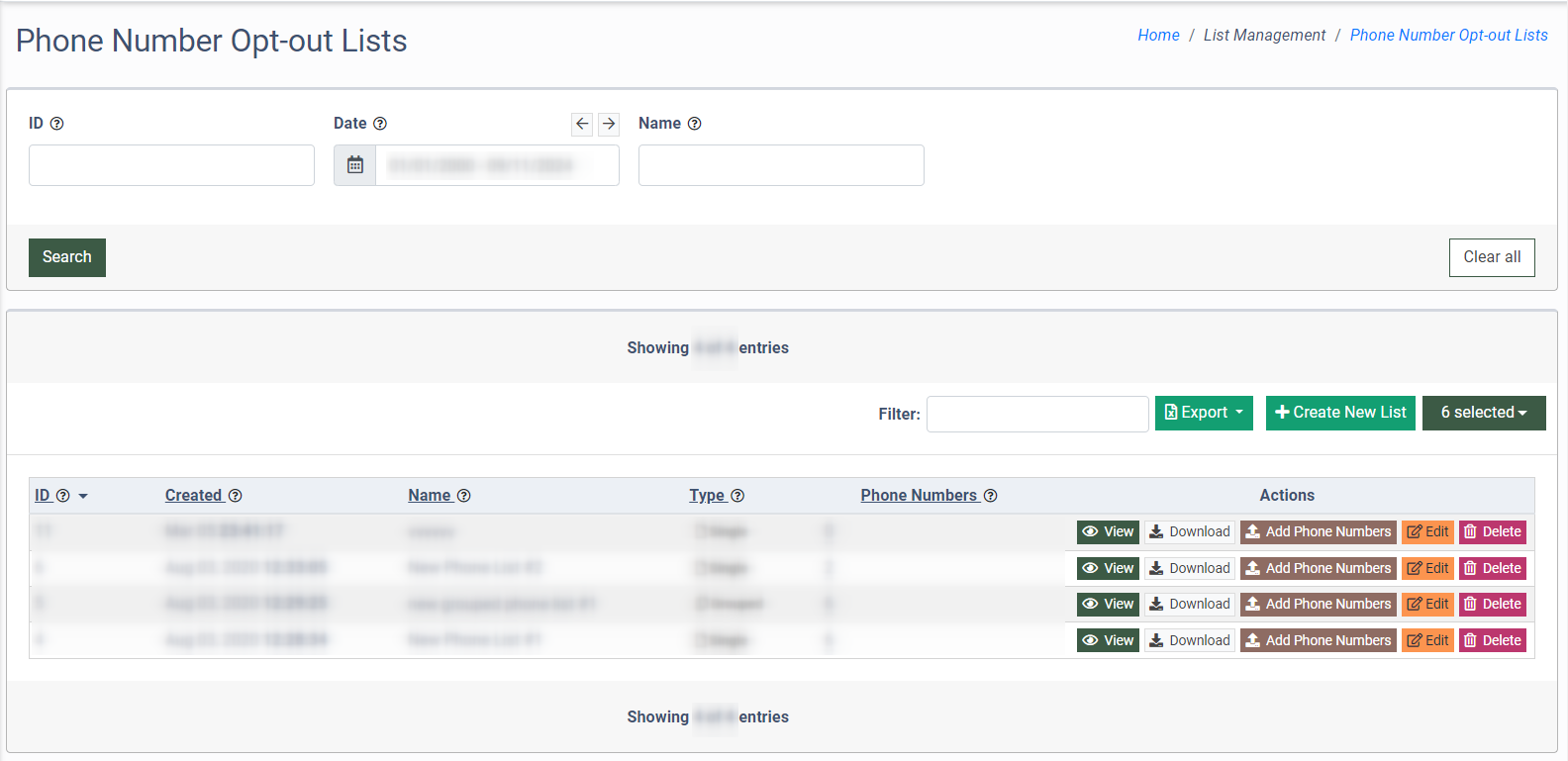 Phone Number Opt-Out Lists