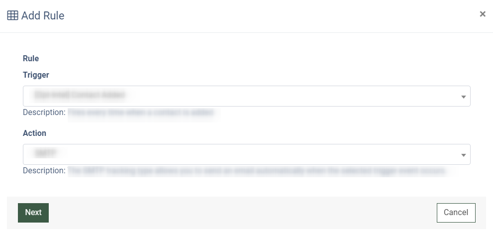 To add a new tracking rule on the Email Opt-Out List level, click the “Add Rule” button and fill in the following fields in the “Add Rule” pop-up window: