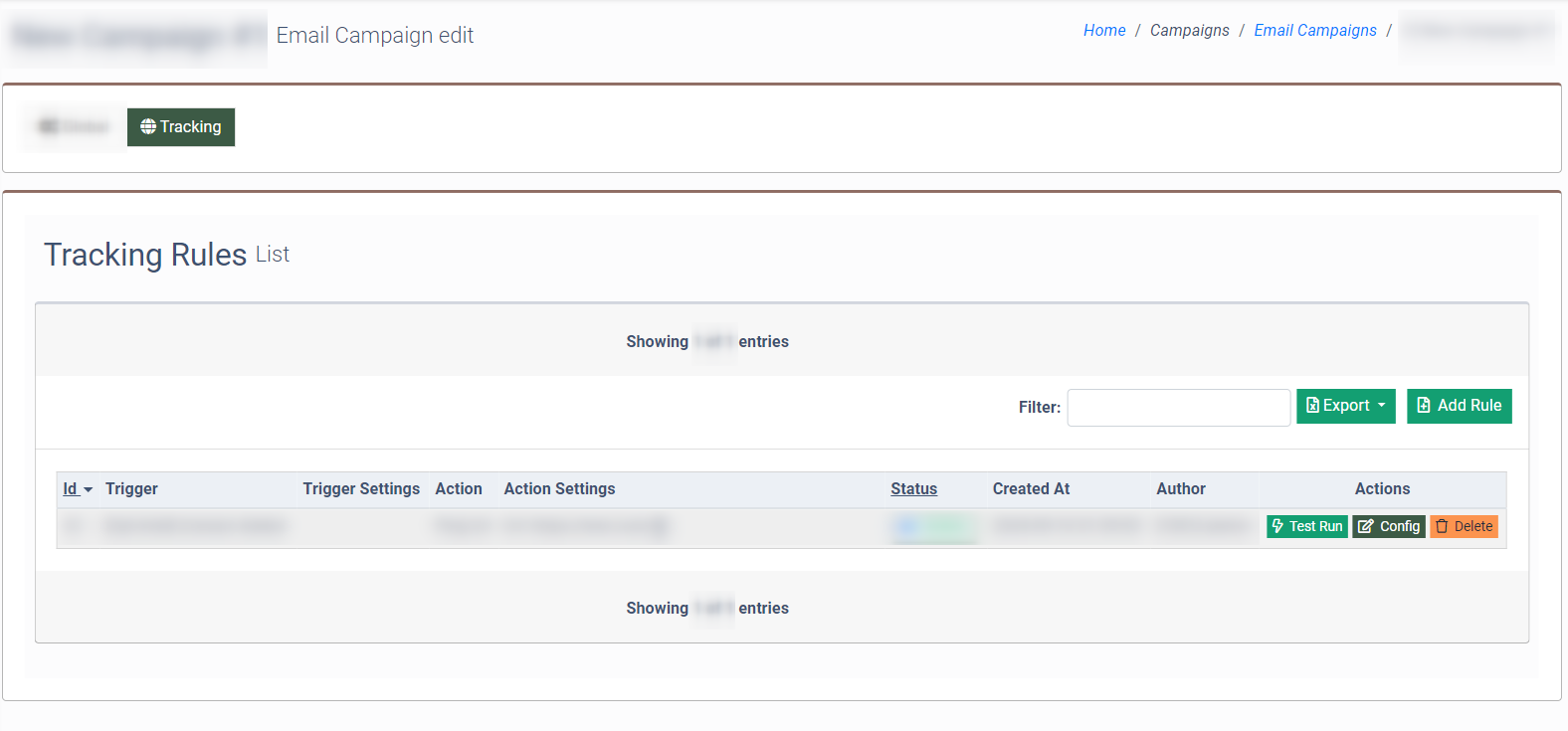 Select the “Tracking” tab in the “Email Campaign edit” section.