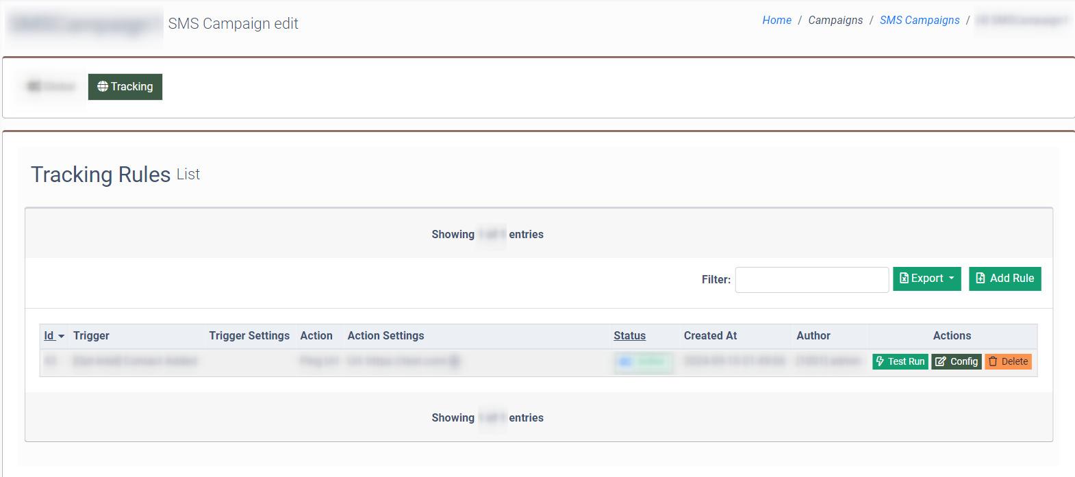 Select the “Tracking” tab in the “SMS Campaign edit” section.