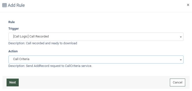The Call Criteria tracking type allows you to ping the Call Criteria service when the call recording is available for download.