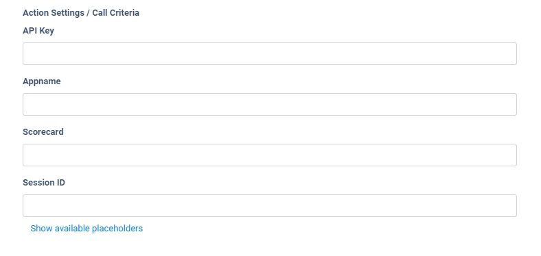 - Session ID: Select the placeholder to specify the session identification number. To view available placeholders, click the “Show available placeholders” button.