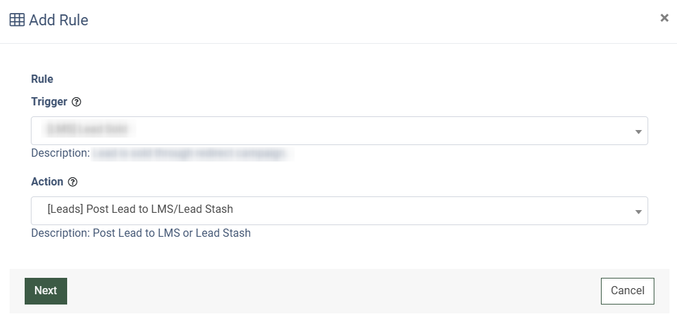 The Post Lead to LMS/Lead Stash tracking type allows you to send the LMS lead into the system using the POST method when the selected trigger event takes place.
