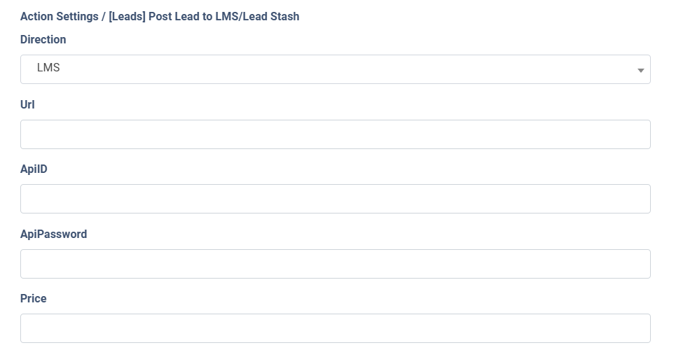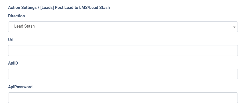 • Action: Select the “Post Lead to LMS/Lead Stash” option.