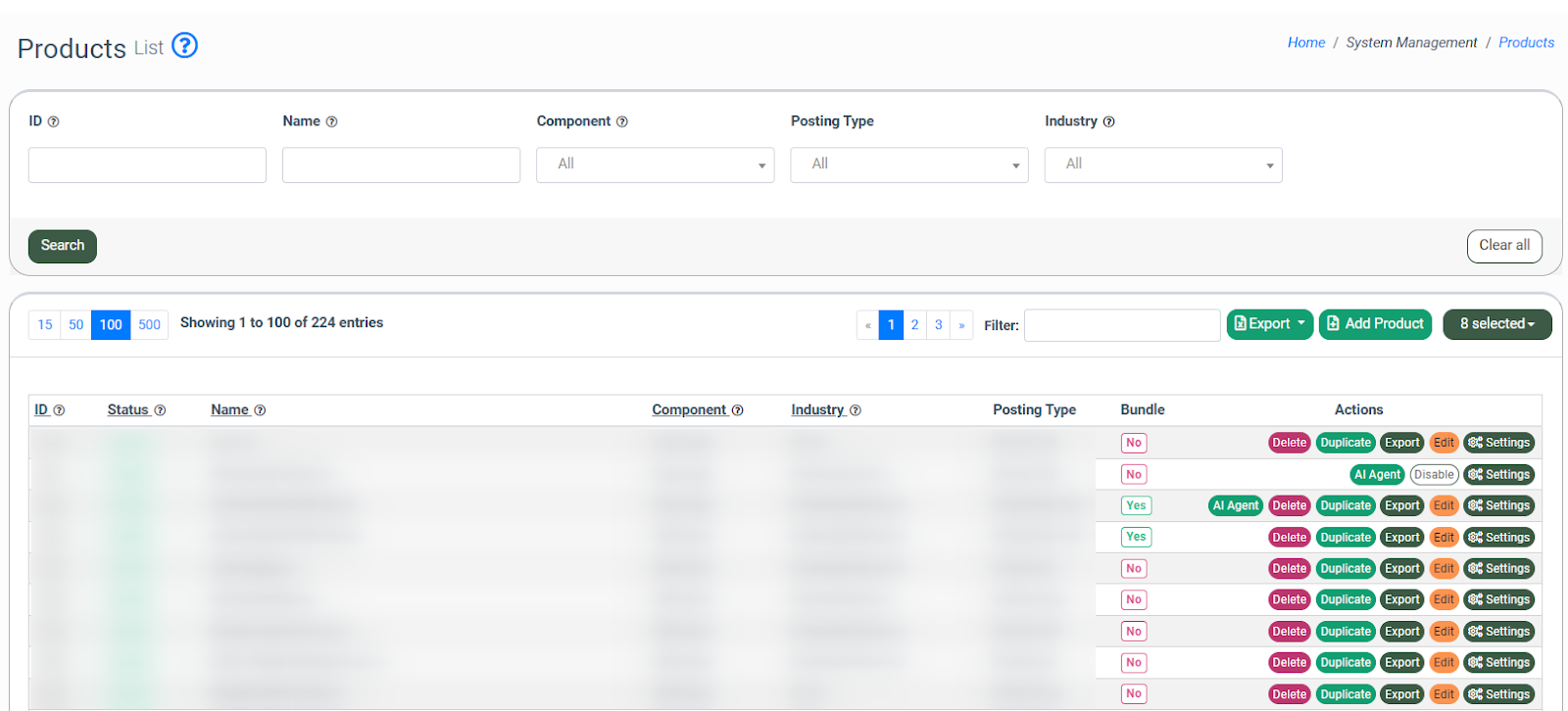 To view the list of Products, go to the System Management > Products section.