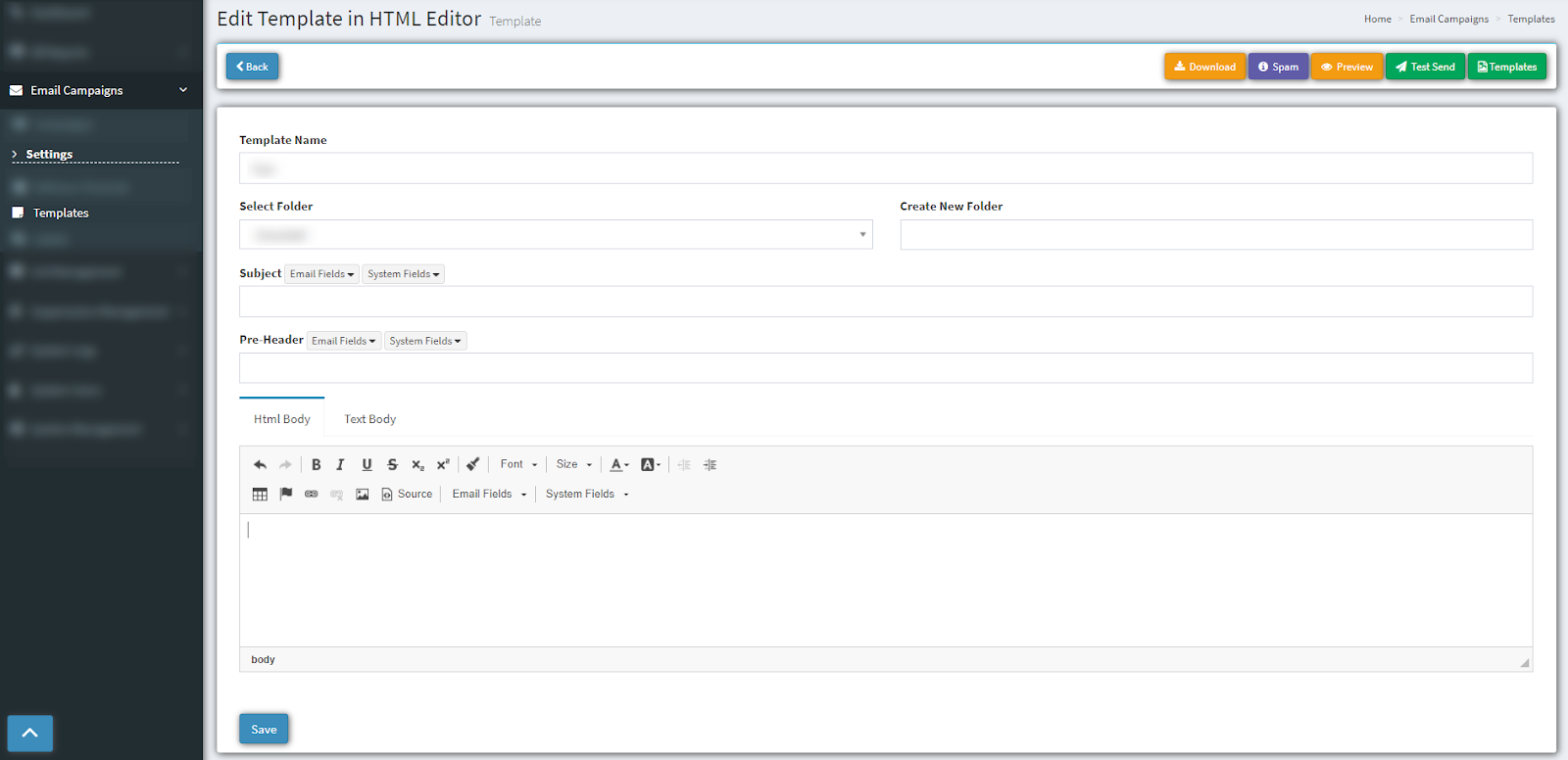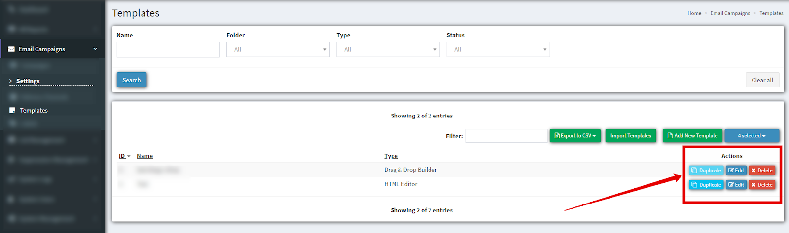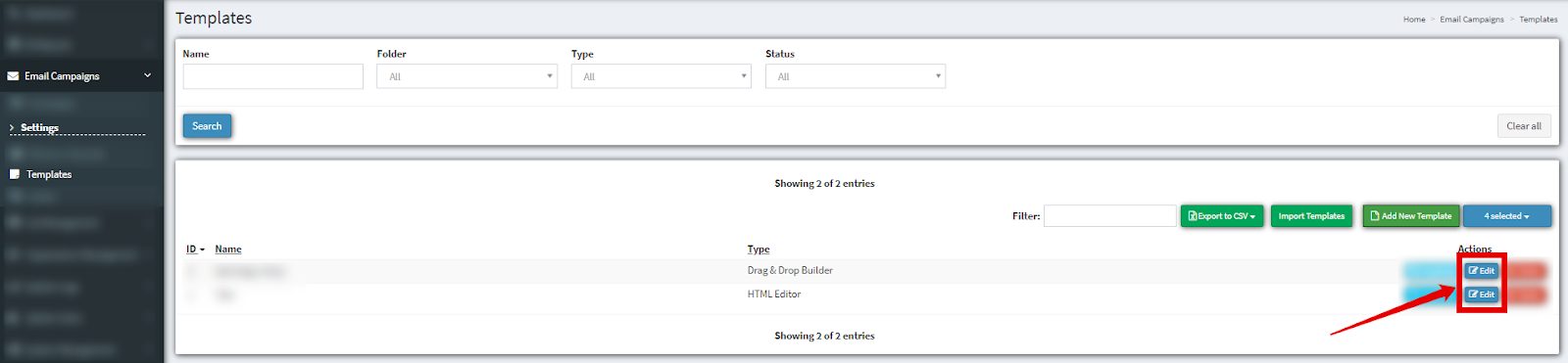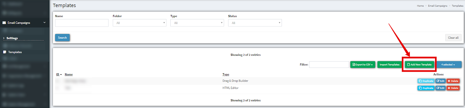 To create a template, go to the Email Campaigns > Templates section and click the “Add New Template” button.