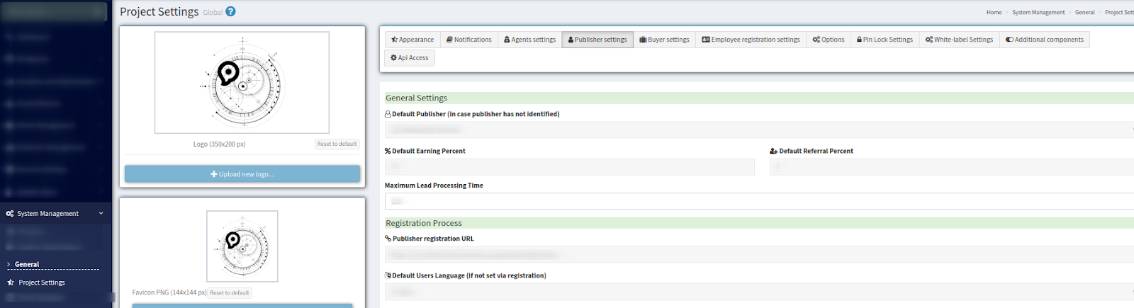 The default Publisher can be set up in the system in the "General Settings" block of the System Management > General > Project Settings section.