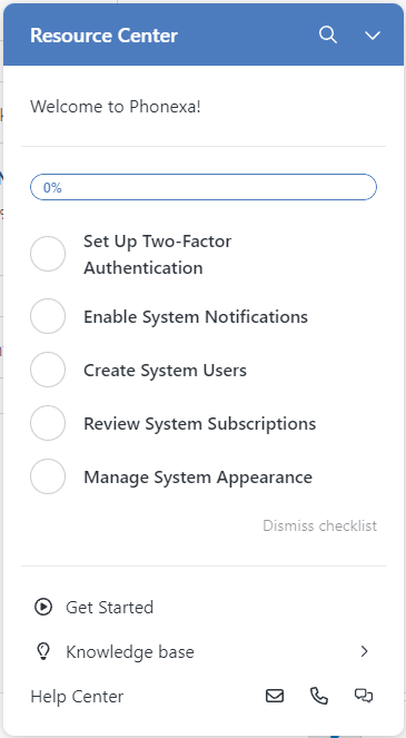 To finish or remove the setup from the Resource Center, click the “Dismiss Checklist” and confirm the action.