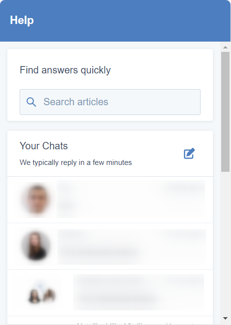 The “Your Chats” block contains the chat history. Click one of the previous chats to reread it if deactivated or continue the conversation in case the chat is still active. To chat with the support team, click the pencil icon and write a message.
