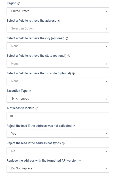 - Reject the lead if the address has typos: Select whether you want to reject the lead if the address contains typos.