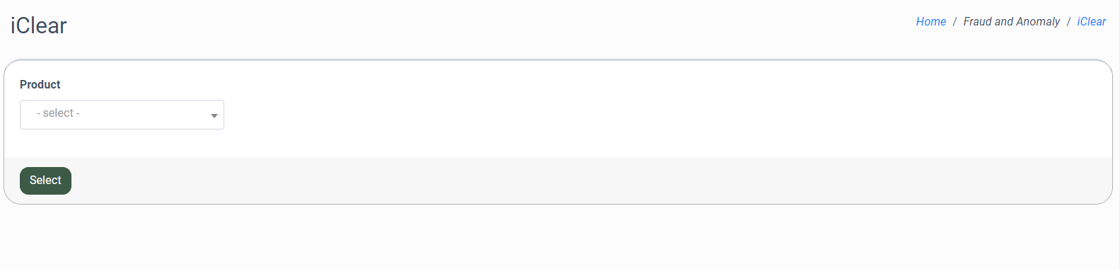 To enable this service, go to the Fraud and Anomaly > iClear > Lead Processing Rules section and select a Product from the drop-down list.