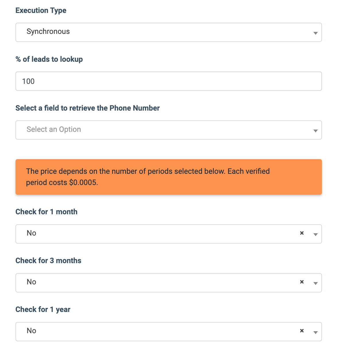- % of leads to lookup: Set the percentage of leads to be checked through this service.