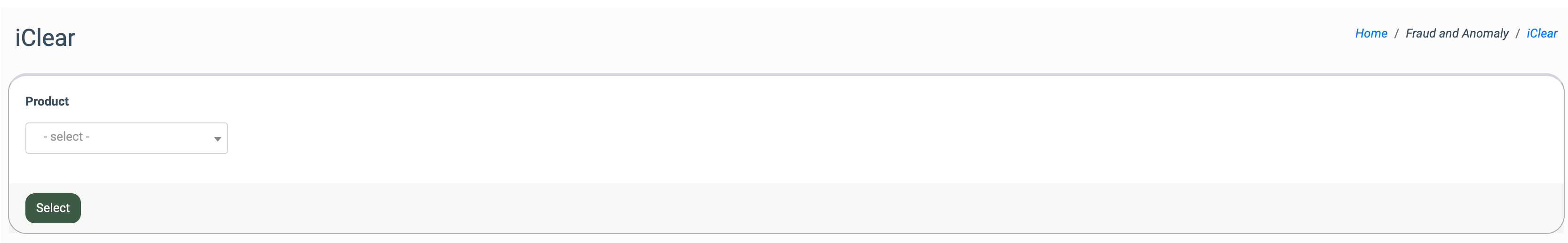 To enable the service, go to the Fraud and Anomaly > iClear > Lead Processing Rules section and select a Product from the drop-down list.
