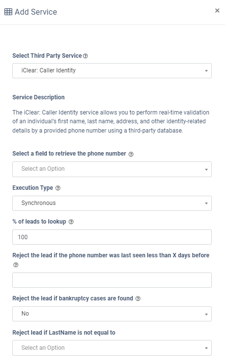 - Reject the lead if bankruptcy cases are found: Select “Yes” to reject the lead in case the bankruptcy cases are found in connection to this phone number.