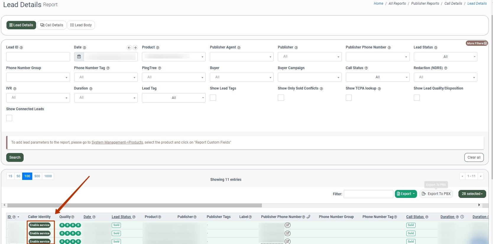 You can view the results of the Caller Identity check in the All Reports > Publisher Reports > Call Details report, “Lead Details” tab.