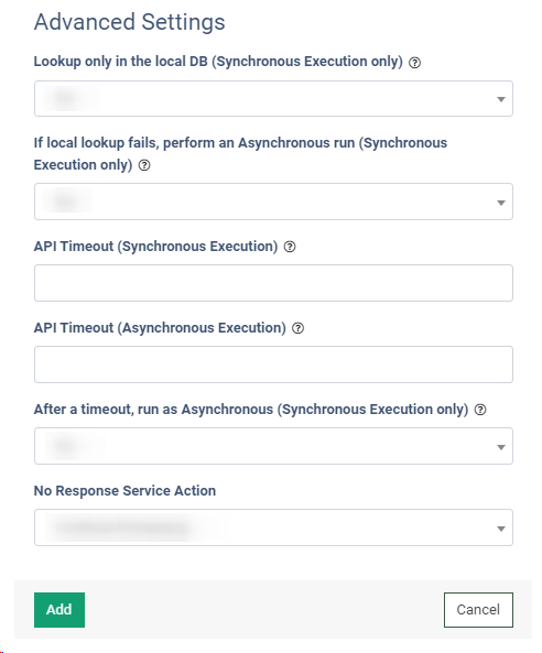 The “Advanced Settings” configuration block allows you to customize the lookup and timeout settings of the service according to the selected Execution Type.