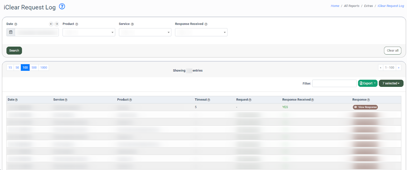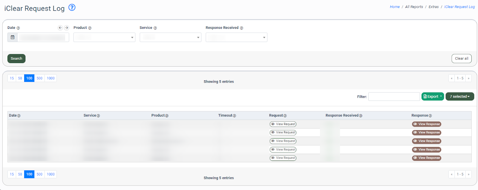 The iClear Request Log allows you to view the records of the requests to the iClear services via API.