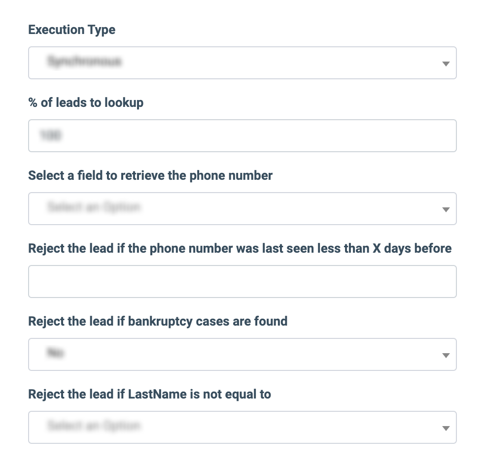 • Select the "Asynchronous" option to make a simultaneous request and process a lead without waiting for the lookup outcome. This execution type is recommended for analytical purposes and not for real-time lead filtration based on the lookup status. While processing a lead, the system makes a request to the third-party database.