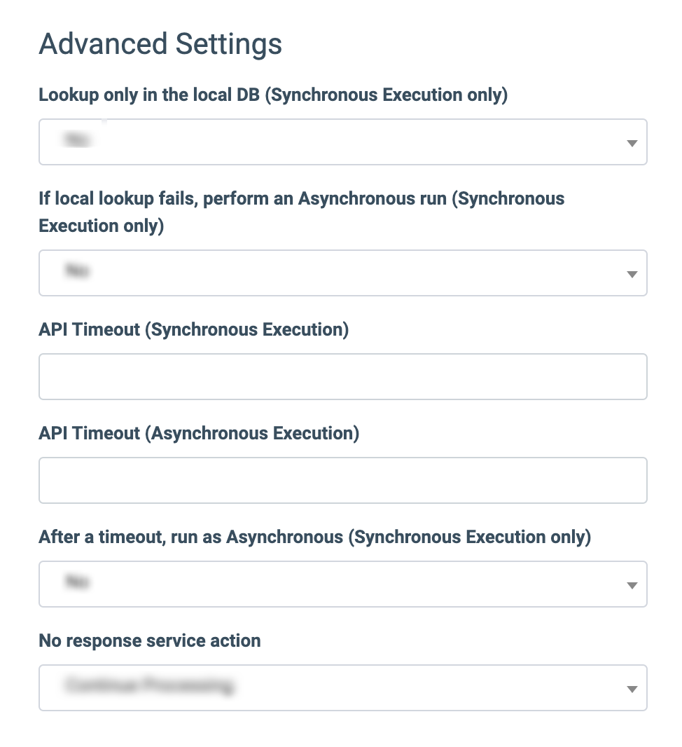 The “Advanced Settings” configuration block allows you to customize the lookup and timeout settings of the service according to the selected Execution Type.