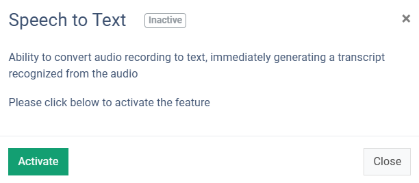 To enable the Speech to Text feature, click the “Activate” button in the “Action” column, and confirm the operation by clicking the “Activate” button in the following pop-up window.