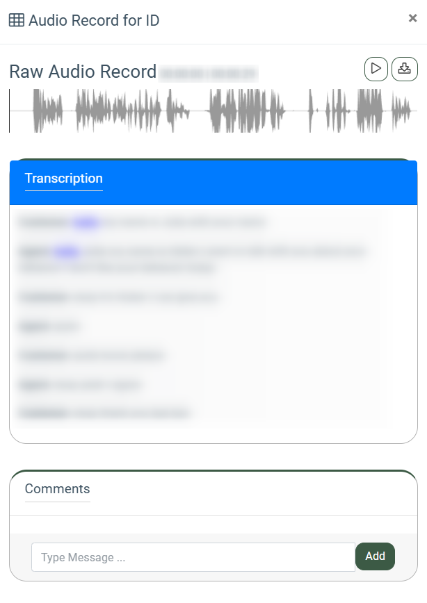 - Comments: Enter additional information about the call recording and click the “Add” button to complete the record.