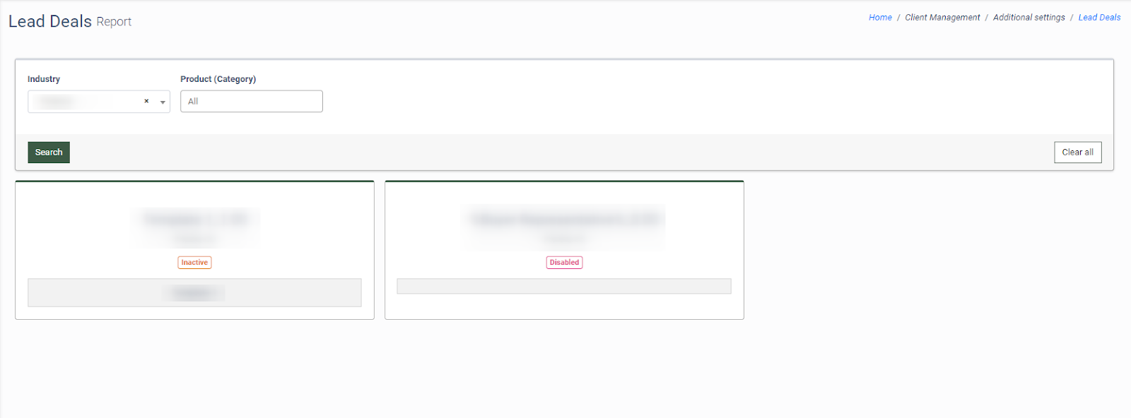 To view the section, go to Client Management > Additional Settings > Lead Deals.