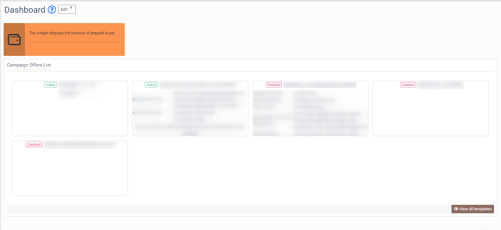 The system will forward you to Dashboard, where you can view the widgets with all Deals available for the corresponding Buyer Editor user.