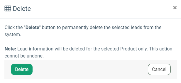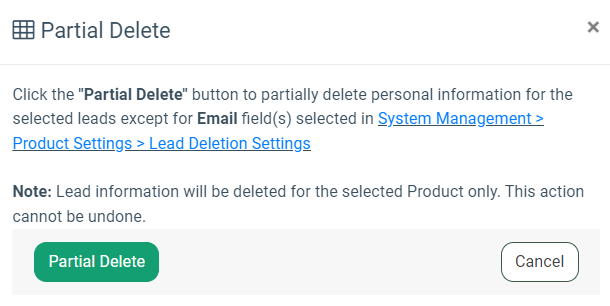 To make the partial deletion of the lead information, click the “Partial Delete” button. Click the “Partial Delete” button in the “Partial Delete” pop-up window to complete the action.