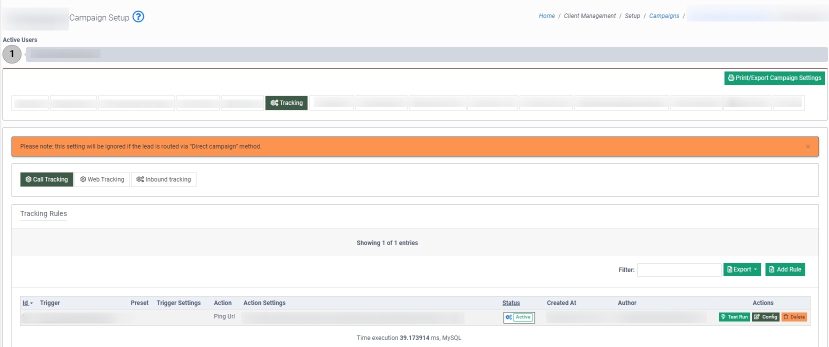 - Call Tracking: Allows you to manage tracking rules for the Call Logic Campaign.