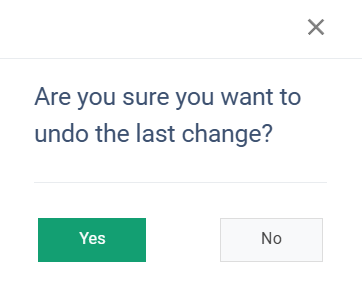 To revert the latest change to the dashboard, click the “Undo” button and confirm the action by clicking the “Yes” button in the following pop-up window: