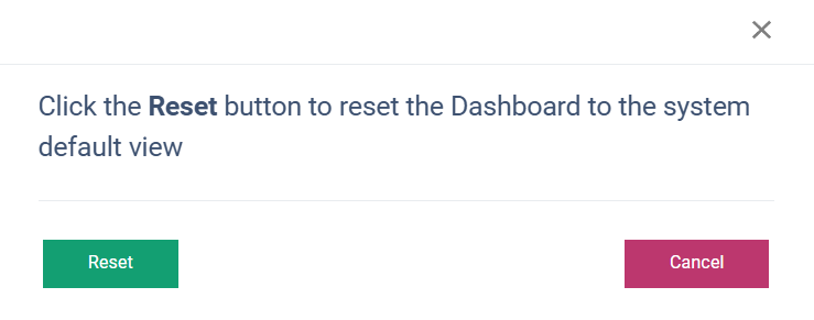 To retrieve the default placement of widgets, click the “Reset to default” button. Click the “Reset” button in the following pop-up window to reset the Dashboard to the system default view: