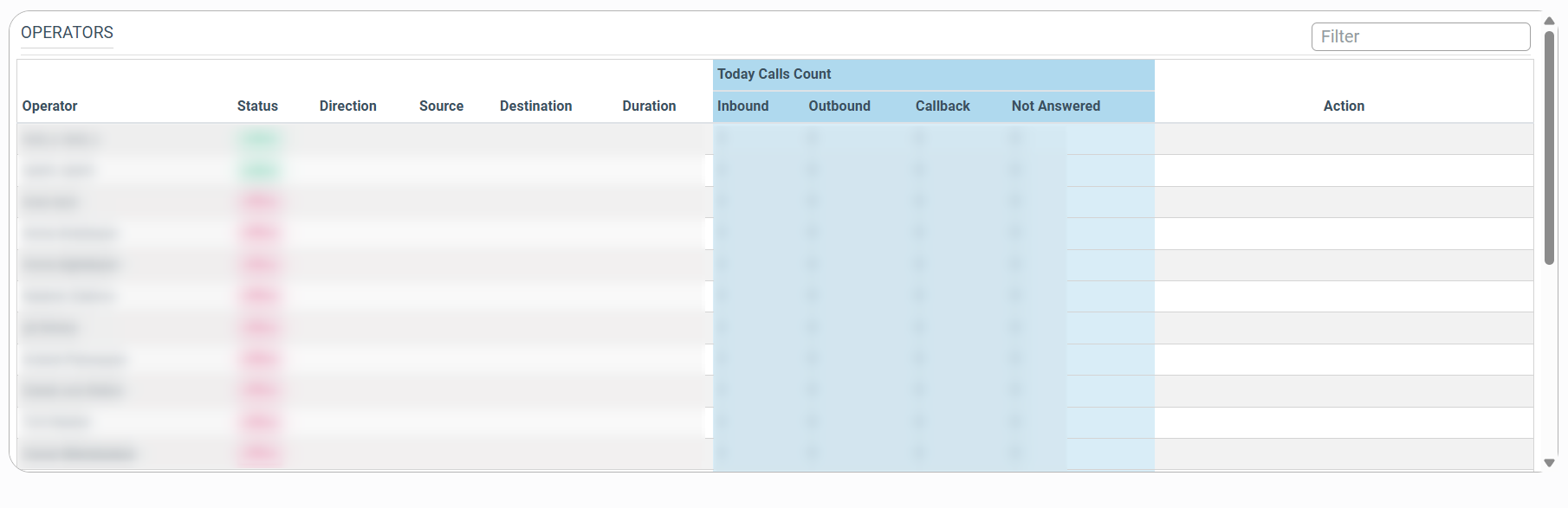 - Inbound: The current number of inbound calls that were received by the particular operator at the current moment.