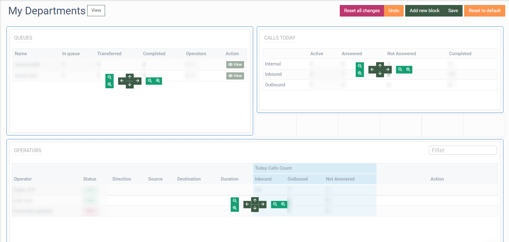 - Today Calls Count: The block contains the summary information about the number of calls based on the direction: