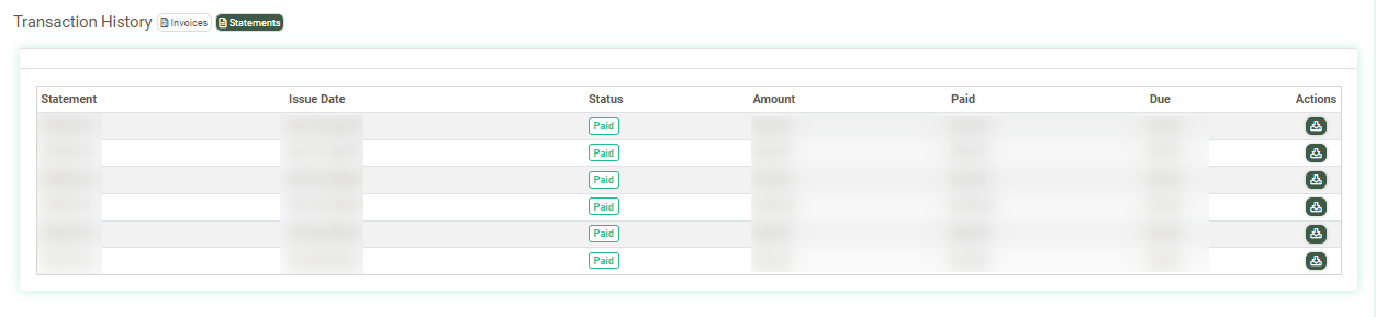 To download the invoice/statement, click the “Download” button in the “Actions” column.
