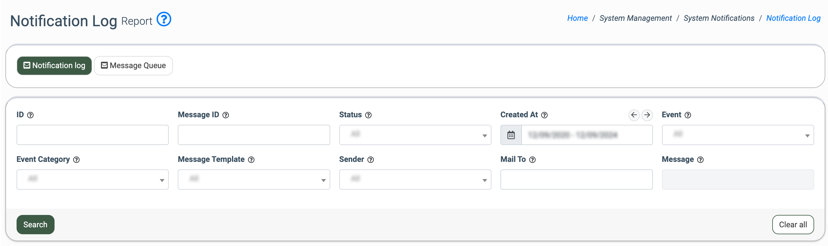 The Notification Log report provides detailed information about each notification, including its date and time, type, recipient details, delivery status, and more. Additionally, this report allows you to view the current queue of notifications or emails that are prepared for sending.