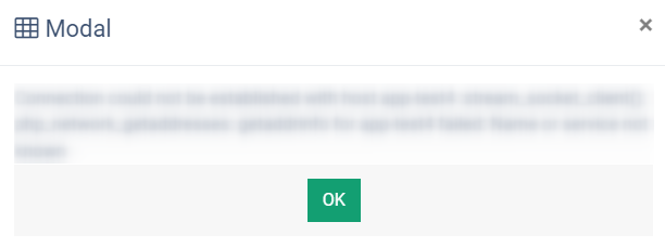 To view the reason for the error while the event notification sending, click the “Show Error” button in the “Actions” column. The detailed information about the error message will be displayed in the “Modal” pop-up window.