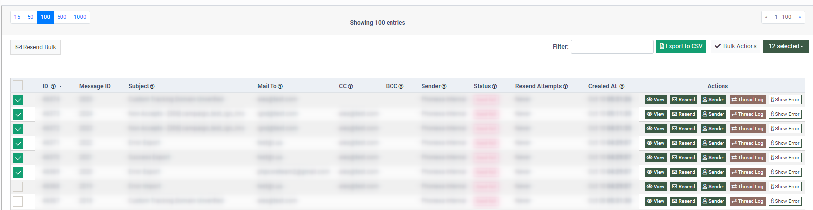 To download the list with the message queue in the “CSV” file, click the “Export to CSV” button.