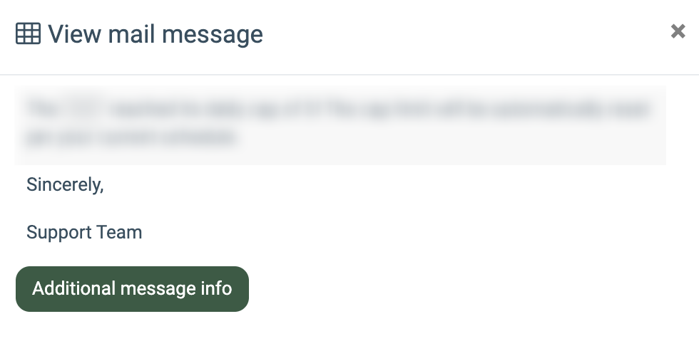 To check additional information about the ongoing mail message, click the “Additional message info” button in the “View mail message” pop-up window.