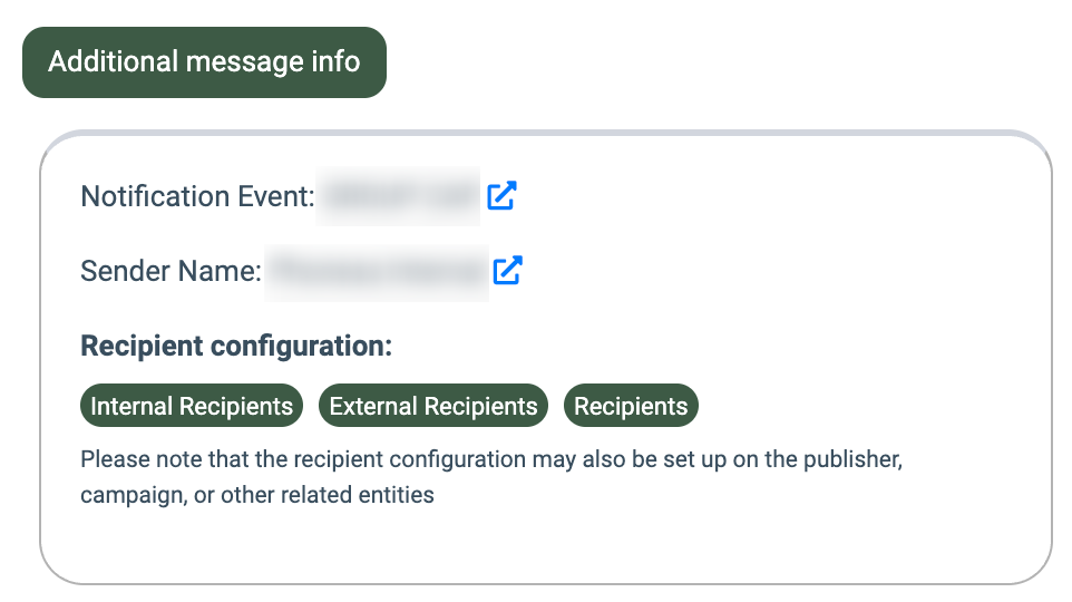Click the “Additional message info” to view more detailed information about the notification event, sender, and the recipient configuration.