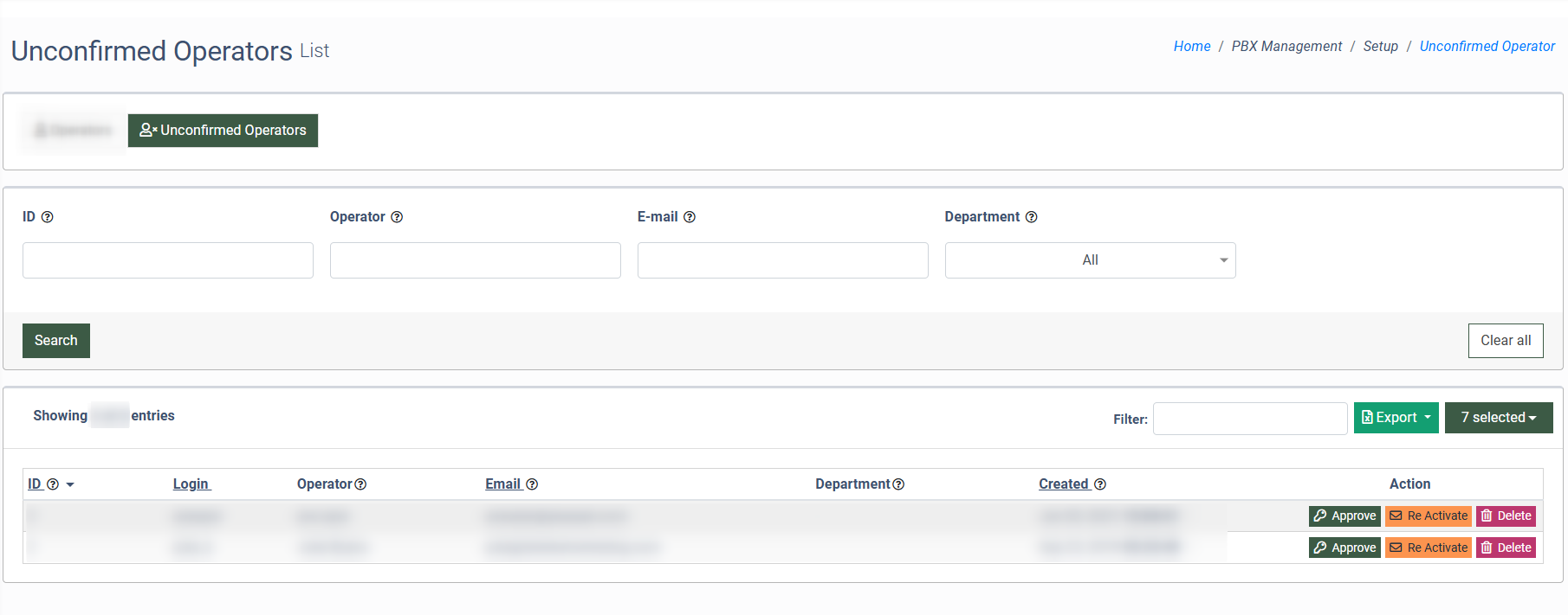 The “Unconfirmed Operators” tab displays a list of the new operators that have been created and are waiting for approval.