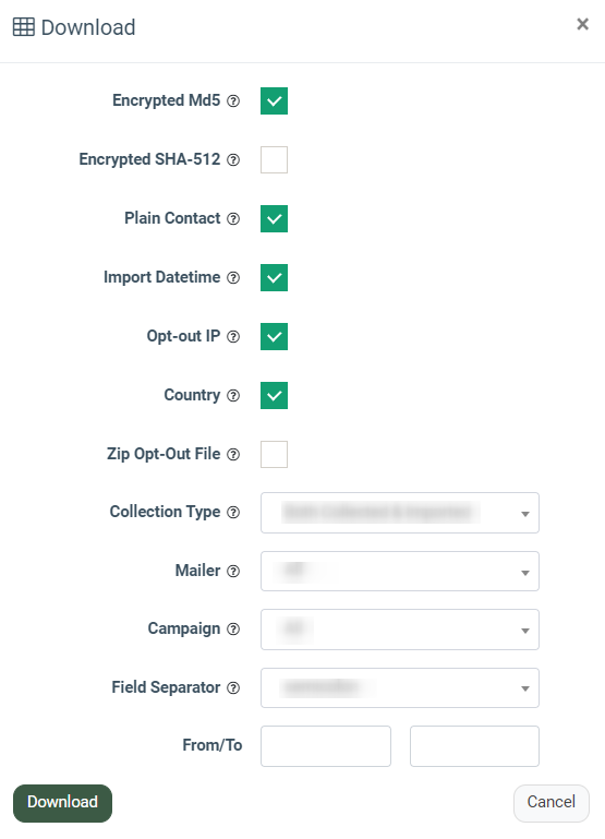 - Campaign: Select the Campaign related to the chosen mailer to download the opt-outs for the specific campaign only or select All to download all contacts related to the mailer(s).