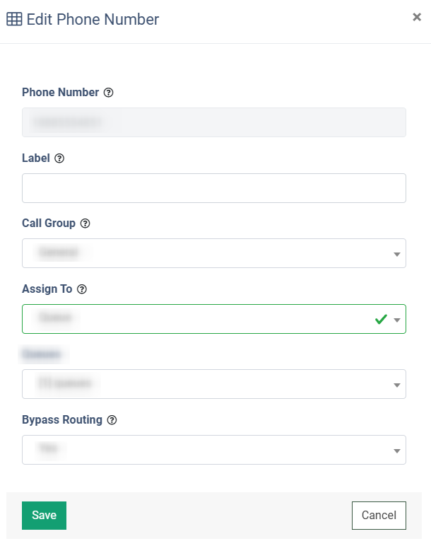- Assign To: Select the Queue, Operator, IVR, SIP Trunk, Campaign, or Voicemail Box assigned to the phone number.