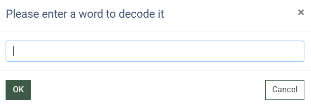 Note: After clicking the “ABC” button, the “Please enter a word to decode it” pop-up window will appear. You can enter the Latin letters which will be transformed into numbers as soon as you click the “OK” button. The letters correspond to the keys on old push-button phones, e.g. MNO - 6, TUV - 8, etc.