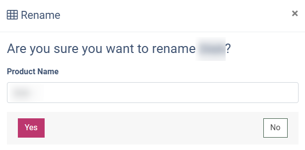 To rename the Product created from the template, click the “Rename” button in the “Actions” column, enter the new name of the Product, and click the “Yes” button.
