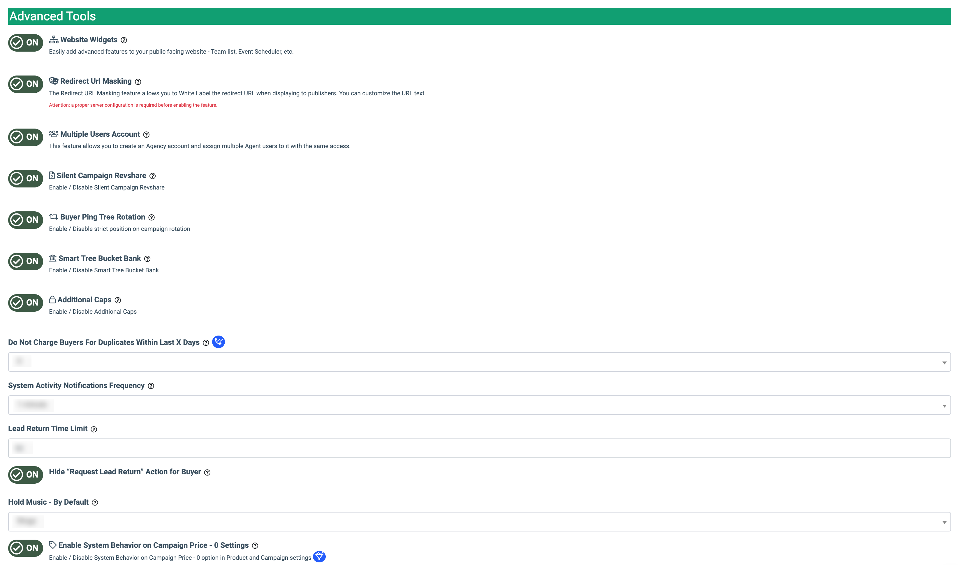 - Buyer Ping Tree Rotation: Switch the toggle to the “On” position to enable the buyer Ping Tree rotation feature.