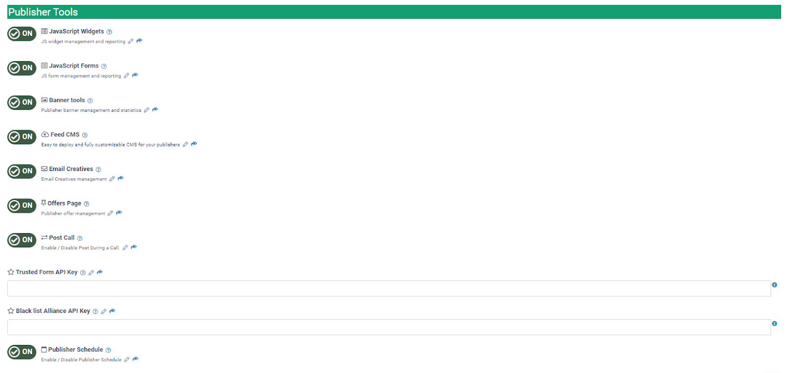 - Feed CMS: Switch the toggle to the “On” position to enable fully customizable CMS for your publishers.