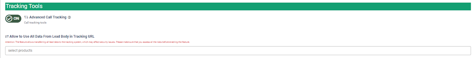 Attention: The feature allows transferring all lead data to the tracking system, which may affect security issues. Please make sure that you assess all the risks before enabling the feature.