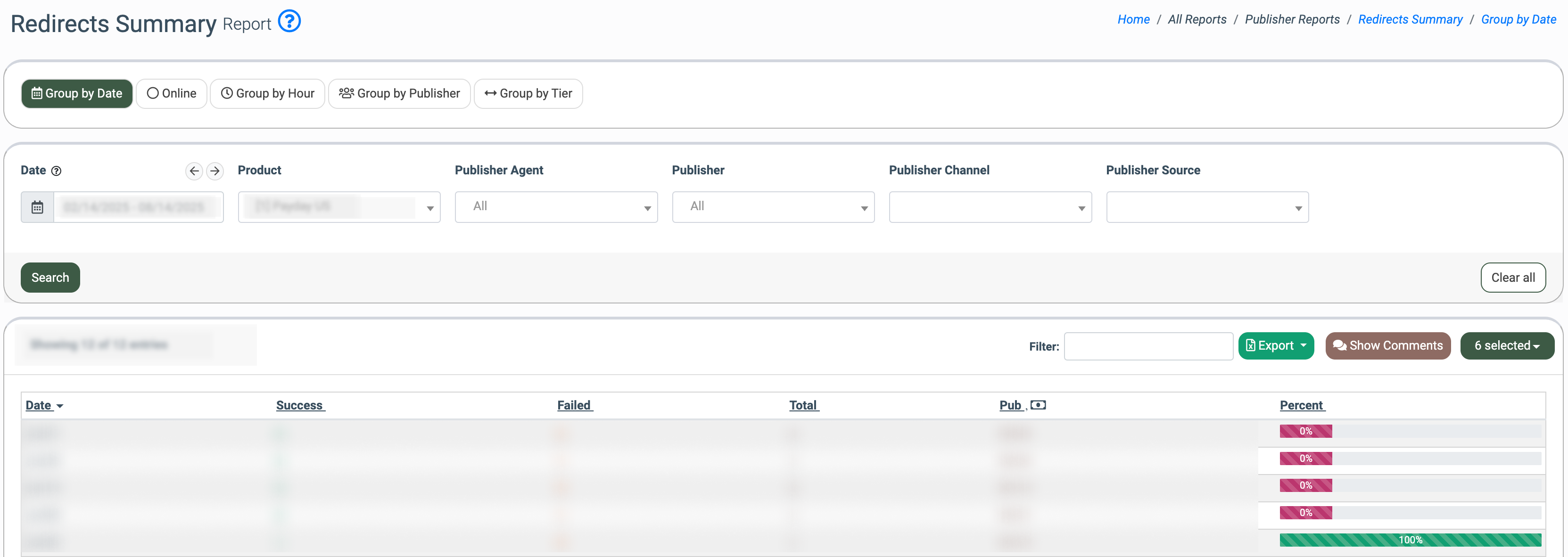 Use the Publisher Redirects Summary report to assess the success rates of redirects to Buyer URLs and identify areas for improvement.
